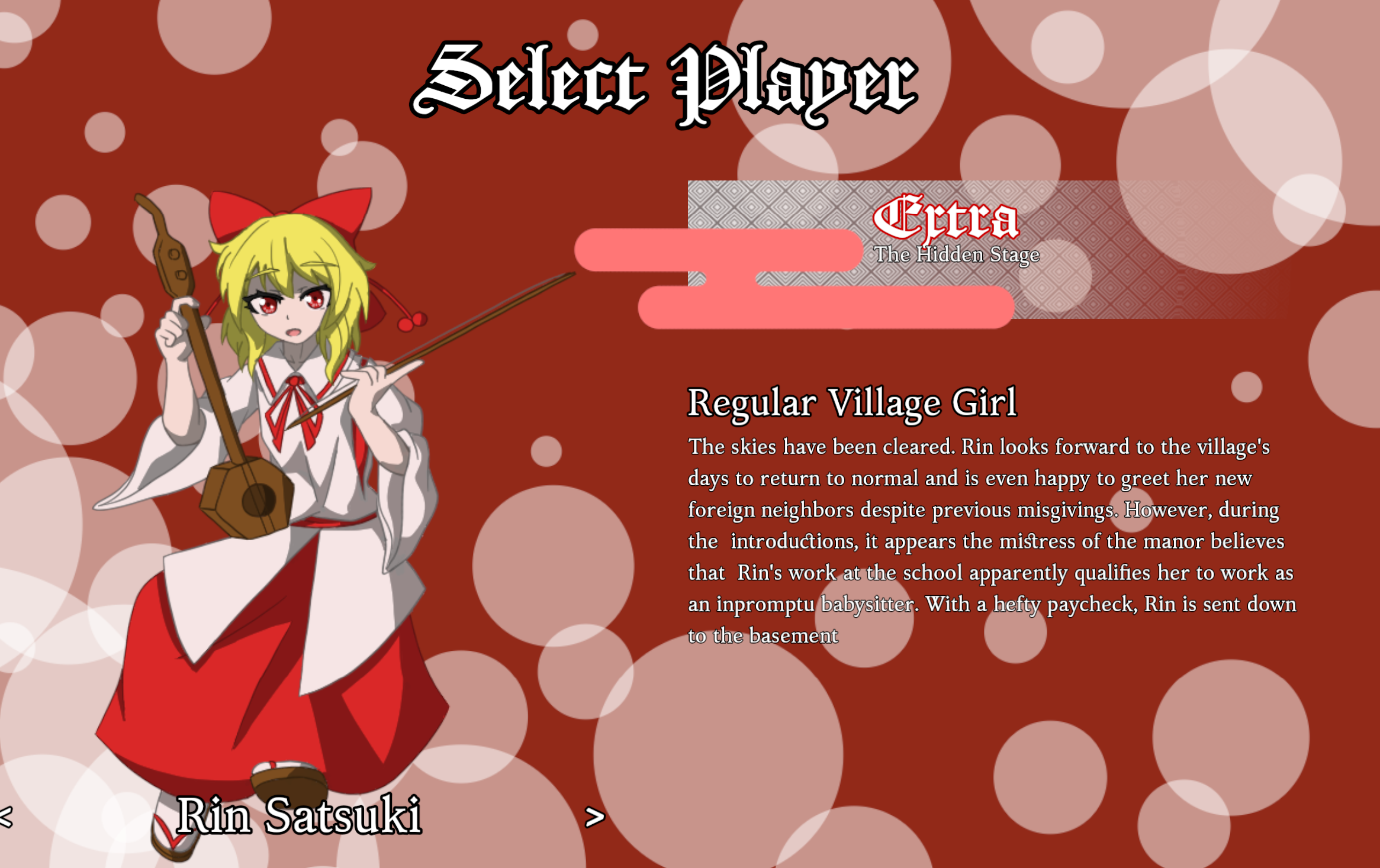 Rin extra stage screen seems to have an extra space between 'the' and 'introductions' in line 4 and 'that' and 'Rin's' in line 5. Missing a period at the end of basement in the final line.