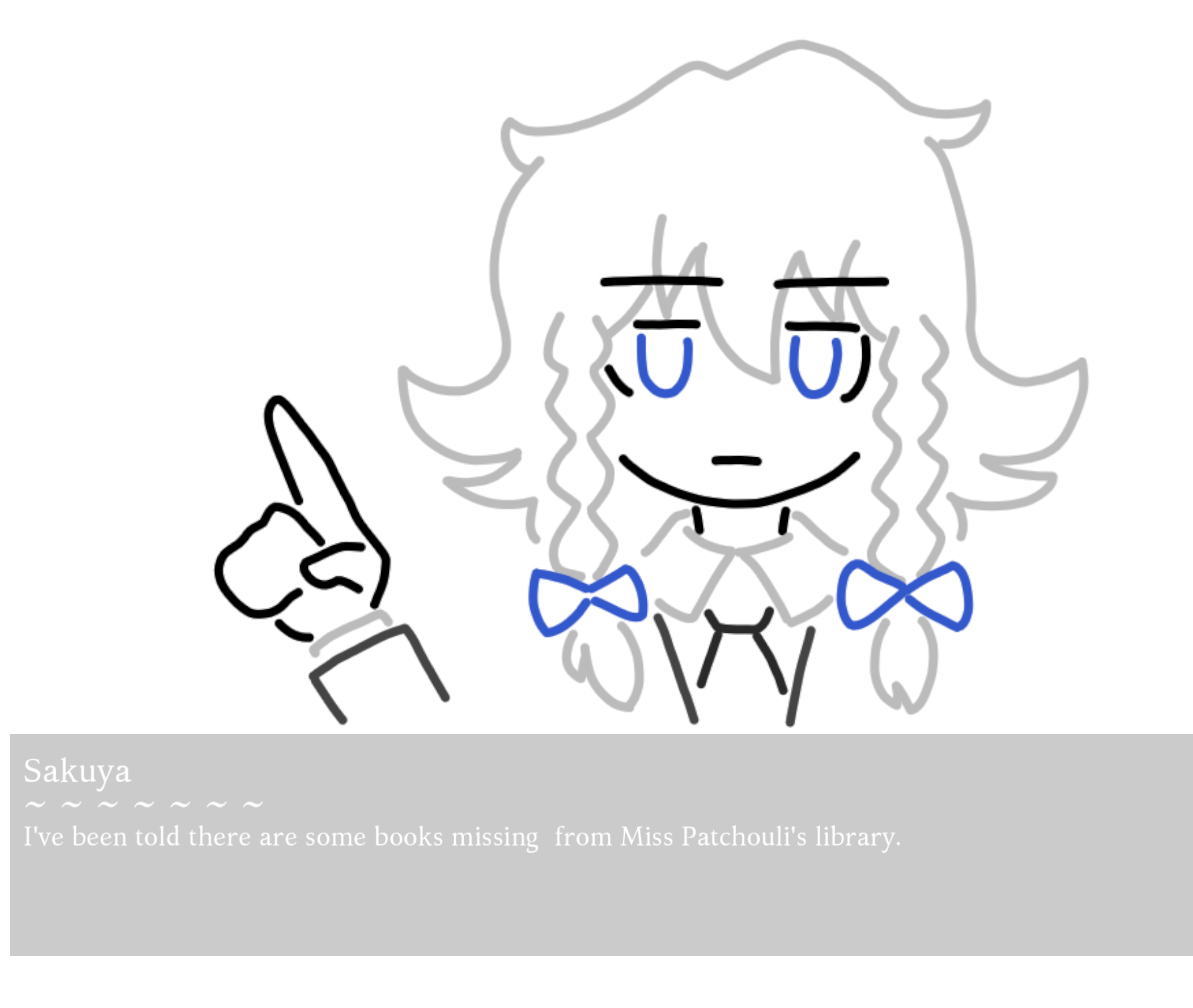 Reimu A ending has a few typos like with this Sakuya line. *asks, feeling, regretful
